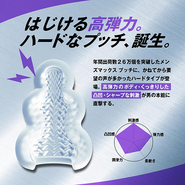 プッチに導入されている「HD成形」と「ハード素材」が組み合わさり最高レベルの刺激!さらにパワフルな反発力。ハード素材による反発力で弾ける様な触感。