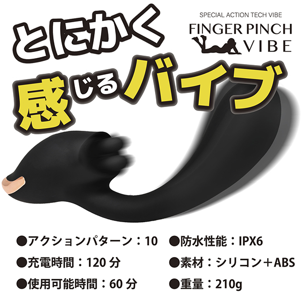二本の指でクリクリされているような疑似体験が楽しめる特殊アクションとビンビン震える振動バイブが付いた責め特化型アイテムです。