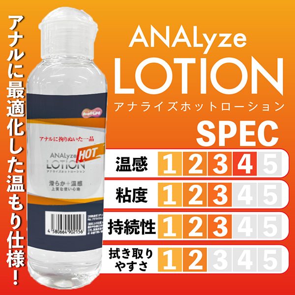 アナルプレイに最適化したホットローション。高い潤滑力で大事な粘膜を保護、じんわり温もり快感UP。