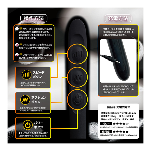 12パターン×3スピードで、お好みの振動アクションが見付かるはず!