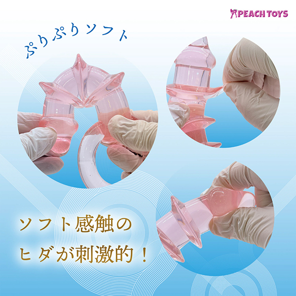 ぷりぷりソフト!動く!ソフトヒダヒダ!絶妙なカーブ形状とリング!ソフト感触のヒダが刺激的!使いやすい大きさと実践的に考えられた形状!高純度エラストマー100%使用