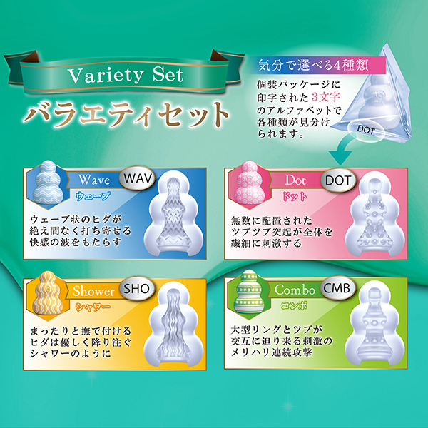 内部構造は、ウェーブ・ドット・シャワー・コンボの4種。初心者の方から通の方まで、幅広くご満足いただけるラインナップです。