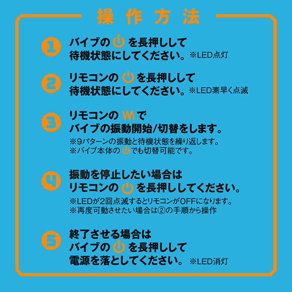※本体:最大連続稼働時間約70分(初期振動パターン未変更時)_完全防水のIPX7等級_9パターン振動_付属品:電池式リモコン_USBプラグ式充電ケーブル
