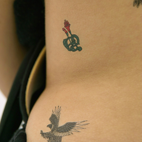 特殊素材を使用しているので、皮膚と一緒に伸縮し、入浴したり海やプールに入っても2〜3日は取れない嬉しい商品です。