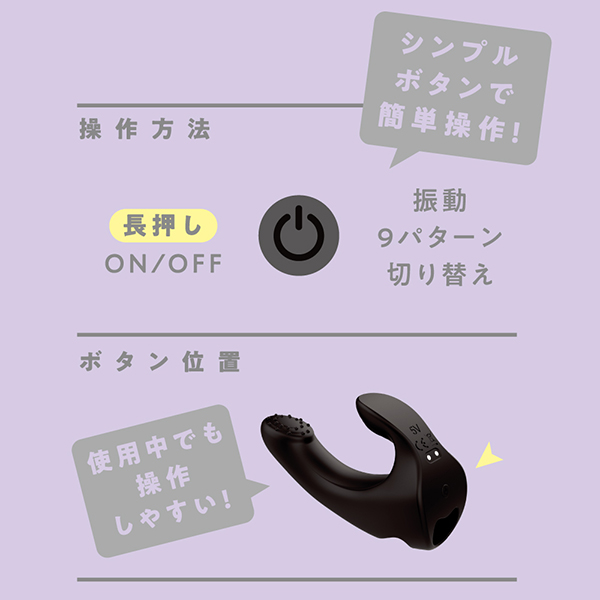 コレってアナルもイケんじゃね?!的な感じの指に装着して使うバイブレーションのご紹介です。指サックタイプの完全防水バイブで、ソフトシリコン素材だから可動域も広めで、9パターン備えたファンクションで気持ちイイところを捉えて激イキ必死。指装着型はとにかく勘所をスグに捉えやすいのが特徴で、小刻みに動かしたりといった独自のアクションをプラスしやすいので、前立腺刺激用のバイブとしても充分楽しめそうです。 サックの先端にモーターを内蔵しているので、その振動刺激はかなりダイレクトで、先端表面のイボイボもフィットしやすそうです。 ※【在庫あり】の記載のある商品は当日16時までのご注文で即日出荷が可能です。 (注文が殺到し在庫切れとなった場合は発注のお時間をいただきます)
