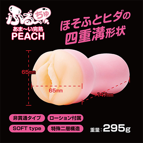 今までに経験したことのない新感触ホールのご紹介です。特殊な二層構造を実現し、外側の素材はしっかり硬めで、内側はフワフワです。また、ベタつき、油染みを抑え、快適に使える素材で作られています。ボディ外側は、クボミがあるので握りやすく、ストロークするのに適しています。「完熟ぴいち」は、柔らかソフトな肉感に、絡みつきやすいX字型の細太ヒダ始終構造が自慢です。 刺激は、やや大人しめなので、長くまったりと楽しみたい時にオススメなホールです。