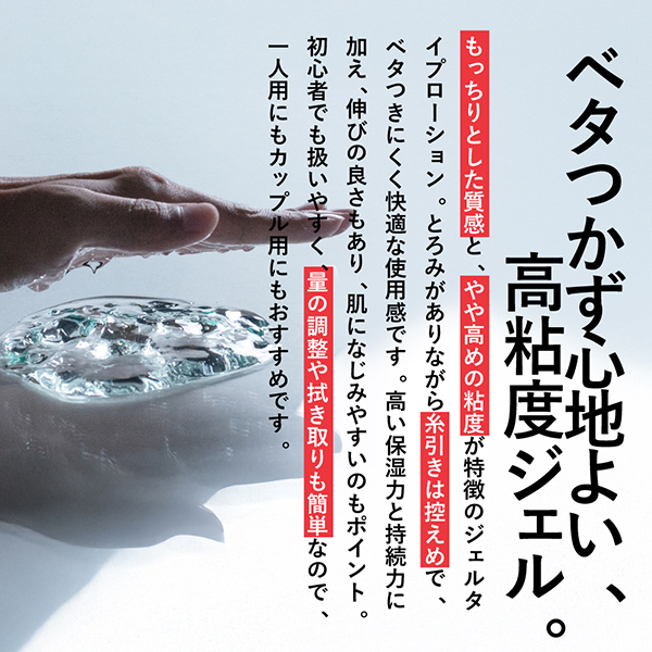 もっちりとした質感と、やや高めの粘度が特徴のジェルタイプローションです。