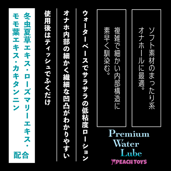 ソフト素材のまったり系オナホールに最適。複雑で細かい内部構造に素早く馴染む。