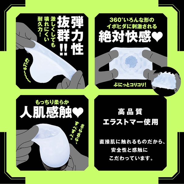 内部構造は、360°いろんな形のイボヒダがびっしり!ぷにっとコリコリの感触は、高速回転している状態でもはっきりとわかります。