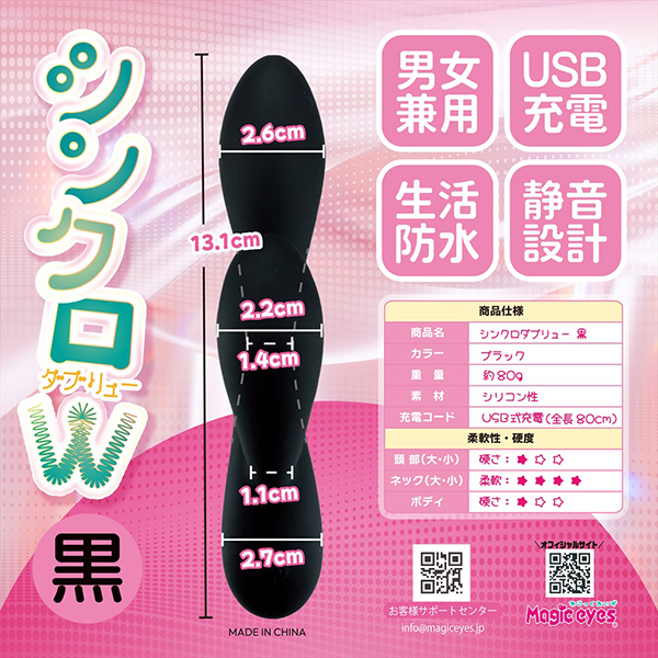 クネクネ柔らかいシリコンのWネックが自由自在の刺激を与えます。