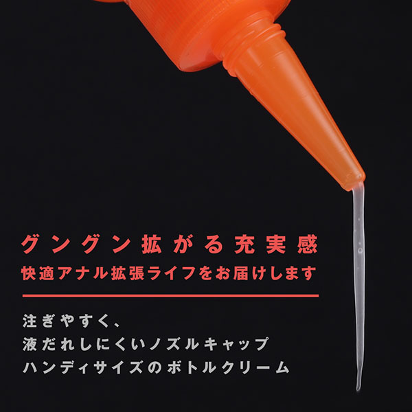 【グングン拡がる充実感!】快適なアナニーライフを楽しんでいただける拡張クリームにボトルタイプの登場です。充填されている拡張クリームは低刺激なものとなっており敏感な部分に負担をかけません。プレイ前に使用していただくと適度にほぐれスムーズなプレイを楽しんでいただけます。容器が柔らかく使いたい量をしっかり出せます!注ぎやすく液だれしにくいノズルキャップでハンディサイズのボトルクリームです! 検査番号:2200580