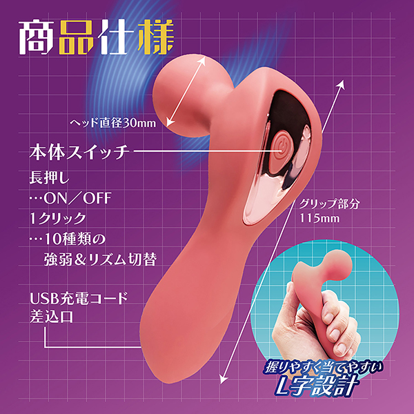 振動パターンは10種類!ワンボタンで操作も感覚的にできるので、自分にあった振動を色々試してみて! 充電式で繰り返し使えます。