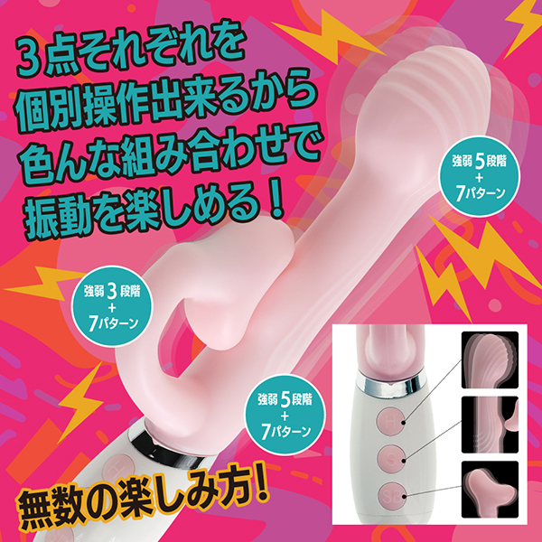 ヘッドとGと外責めをそれぞれ個別操作可能な強力トリプルモーター仕様の全部責めバイブです。