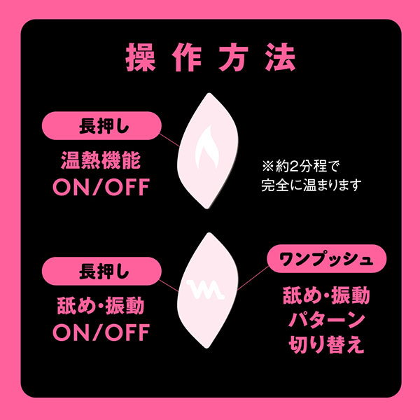 彼の熱い舌を思い出す温感機能は40℃まで温まる人肌温度。先っぽで刺激するチロチロクンニからグイグイ舐め上げる激しいクンニまで多彩なクンニが楽しめちゃう。