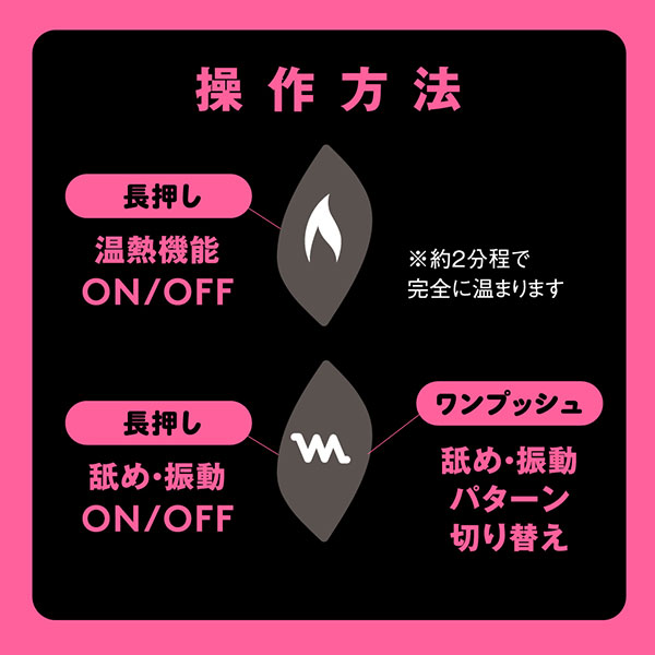 彼の熱い舌を思い出す温感機能は40℃まで温まる人肌温度。先っぽで刺激するチロチロクンニからグイグイ舐め上げる激しいクンニまで多彩なクンニが楽しめちゃう。