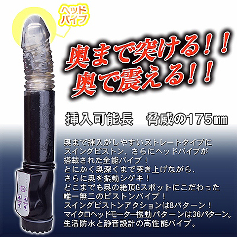 奥まで挿入がしやすいストレートタイプにスイングピストン、さらにヘッドバイブが搭載された全能バイブが登場しました。とにかく奥まで突き上げながら、さらに奥を振動刺激します。 奥野絶頂Gスポットにこだわった唯一無二のピストンバイブです。 人気の「ゼノバイブ」シリーズの新作。 ハイクラス強烈ピストンと、Gスポットを刺激するハイパーヘッドバイブ。 贅沢な刺激を楽しめるストレート防水・静音バイブは、一度使うと手離せなくなること間違いなしです。 カッコイイ黒ボディ。