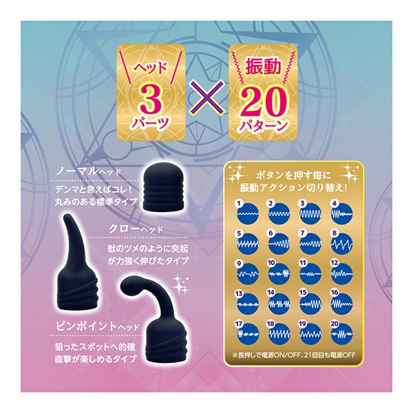 3ヘッド×20振動で、新しい快感へと飛び出しましょう!ヘッドパーツの素材は、肌ざわりの良いシリコン製。