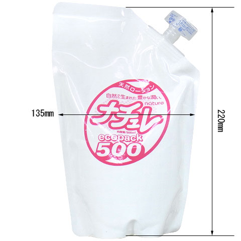自然から生まれた豊かな潤いの天然ローションのゴミの少ないエコパックが新登場「ナチュレ エコパック500」。デリケートな女性の肌に最適なやさしい自然派ローションで、敏感肌の方はもちろん、ローション愛好家にもオススメです。 好みの粘性に薄めて使える、プロ仕様の高粘度仕上げなので、マットプレイにも適しています。 さらに、詰め替え易いキャップ付きのパウチタイプなので、使用後丸めてコンパクトに捨てられるゴミの少ないタイプです。