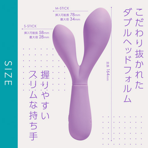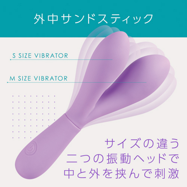大小、サイズの異なる二つの挿入部が配置されたスティックバイブです。
