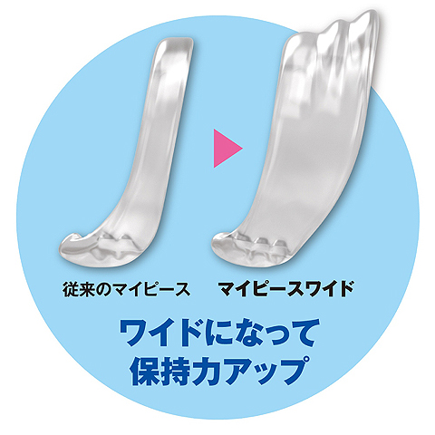 従来のマイピースシリーズよりも幅広にできているので、露出キープ力がパワーアップし、素材には信頼性の高い日本製エラストマーのメディカルスキンを使用しているので、安全性も抜群です。