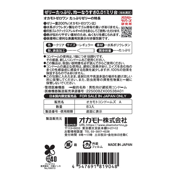 オカモトゼロワン0.01 8個入 たっぷりゼリー
