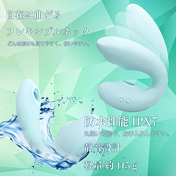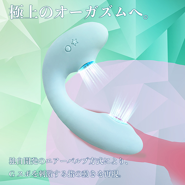 独自開発のエアーバルブ方式により、Gスポを刺激する指の動きを再現。 内側から深い絶頂を呼び起こします。 同じく、エアーバルブ方式で外側の突起も吸引。