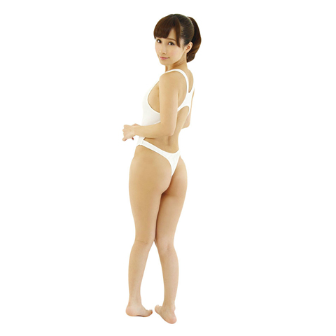 極薄素材で作られた伸縮性のある水着が、エロチックなボディラインを強調する水着「薄々競泳水着(ピュアホワイト2)」
