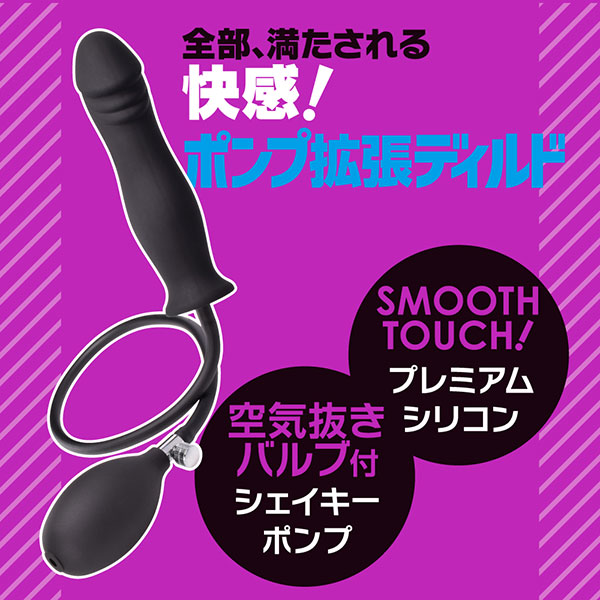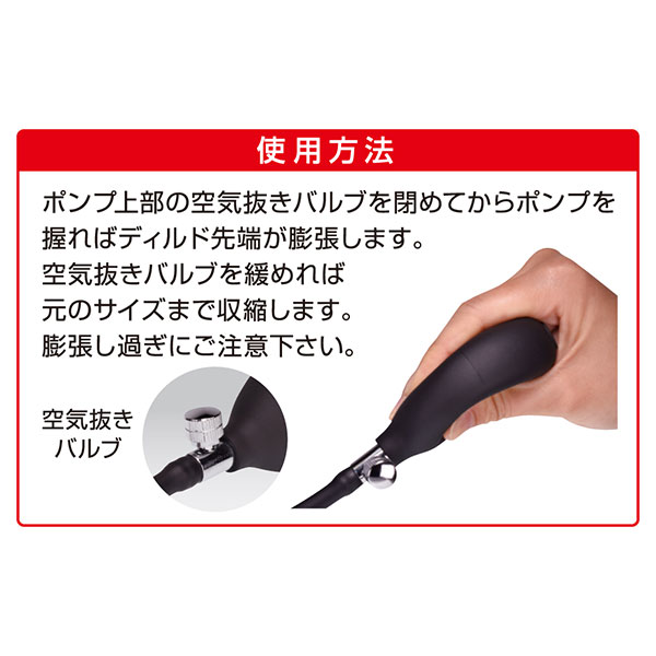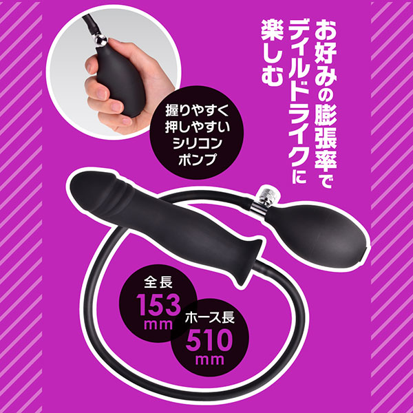 お好みのサイズに膨らませて通常のディルドライクな楽しみ方はもちろん、内部で膨張させて満たされる圧迫感が楽しめます。