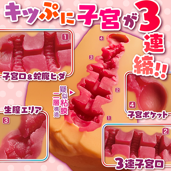 内部の前半は狭口肉厚の「3連子〇口」が締め付けるハード刺激。