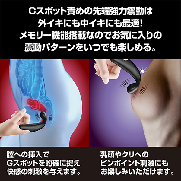 先端に内蔵された高性能モーターがG-spotを直刺激!!Cスポットにも押し当てれば、同時刺激で絶頂必至。