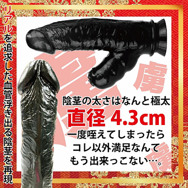 更に大型子機が連動しクリを強刺激!最大経4.3cmの極太×高弾力×肉厚の、正に雄牛のように力強く押し上げ、そそり立つ漆黒バイブを咥えてしまったら、もう普通サイズでは満足できない…。