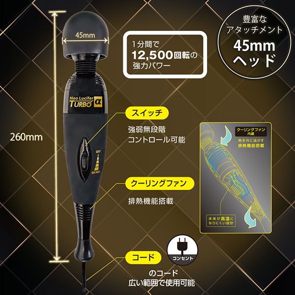 最上級Neo Luciferが満を持して登場――……!12,500回転の大迫力!クーリングファン内蔵で長持ち&パワフルに!