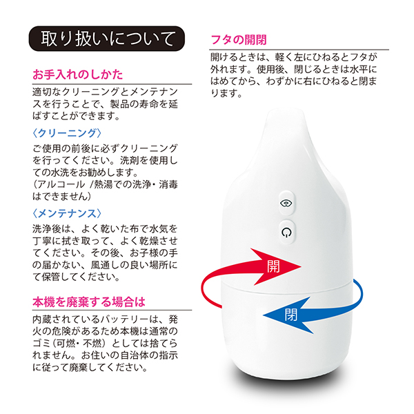 長押しすると吸引を開始。以降、短く押すごとに吸引の長さが変化し(3段階/ループ式)
