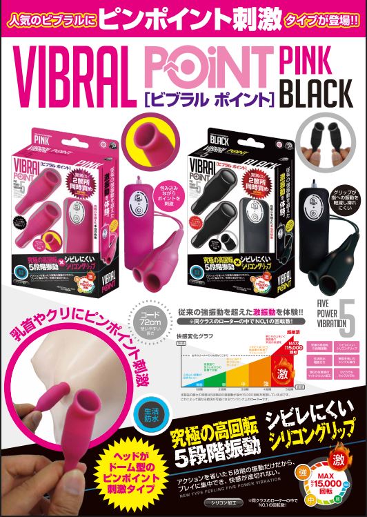 痺れにくいシリコングリップ付きのスタンダードローターの「ビブラルシリーズ」に、「ピンポイント刺激タイプ」が新登場しました。このドーム型のヘッドが、乳首やクリを逃がすことなく刺激します。『激』振動で超絶頂体験も可能です。また、機能はシンプルだから、プレイに集中できます。さらに、5段階振動で、「強」を超えた『激』モード搭載!!MAX毎分15,000回転を実現する『激』モードでも、シリコングリップが、手に伝わるシビレを軽減するので使いやすさ満点。※【在庫あり】の記載のある商品は当日16時までのご注文で即日出荷が可能です。 (注文が殺到し在庫切れとなった場合は発注のお時間をいただきます)
