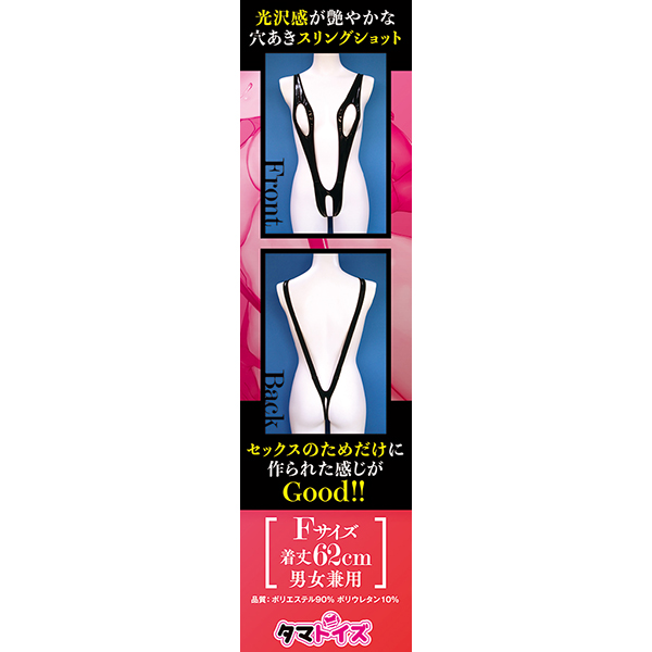 「オタク友達とのセックスは最高に気持ちいい 公式コラボ商品 三芳がラブホで着用したスリングショットを完全再現 セックスのためだけに作られた感じがGood!! ボディラインを美しく魅せるV字型レオタード 光沢感が艶やかな穴あきスリングショット 着丈 62cm Fサイズ 男女兼用 ポリエステル90% ポリウレタン10% イラスト:あるぷ ©あるぷ