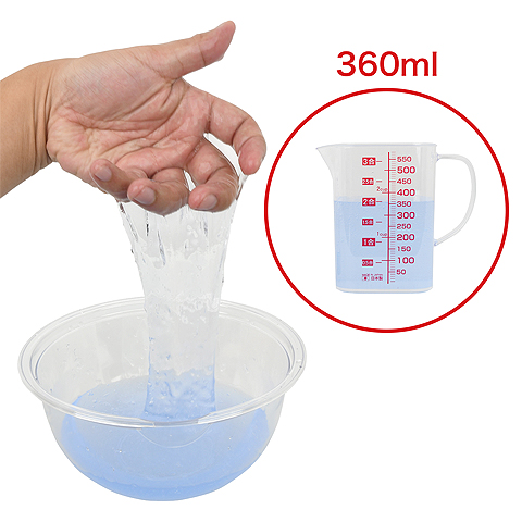 水やお湯に溶かして作るのは従来通り、標準粘度のローションなら、この商品1本で、360mlボトルが50本ほどつくれちゃいます。
