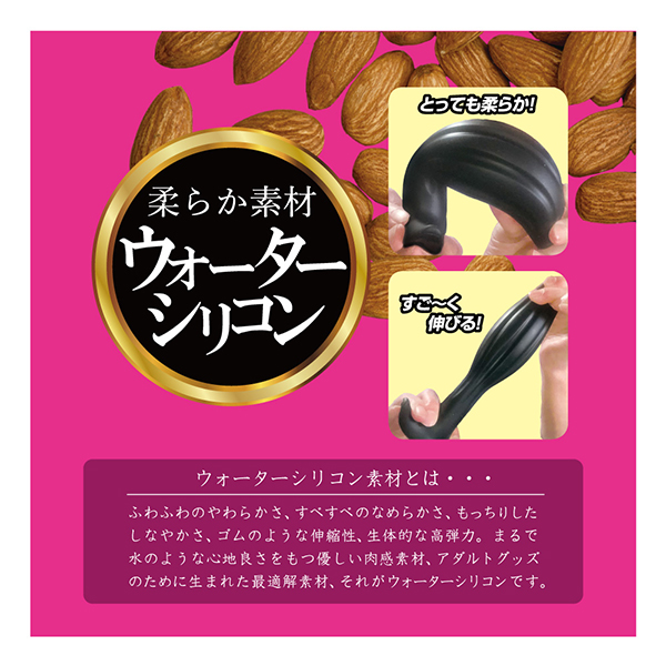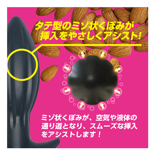 アーモンドフォルム×ウォーターシリコン!形状と素材にこだわった、新感覚ア●ルプラグが新登場!アーモンドナッツのような形状は、先端部に向かってすぼんでいく流線フォルムとなり、スルッとした挿入感を生み出します。さらに、中央部に配置された縦縞状のくぼみが、空気や液体の通り道となり、挿入心地をサポート。最下部は返しの付いた錨モデルで、ヒップラインに沿ったデザインが違和感を低減させます。本体素材には、最先端のウォーターシリコン素材を使用しました。水のように柔らかい、と大評判の人気素材です。すべすべな滑らかさ、もっちりとした肉感弾力、ゴムのように伸びる高伸縮性。あなたにピッタリ寄り添う恍惚素材と、スムーズなインサートとなる快感型状で、新しいア●ルプラグです。「L」は太さ58ミリのエキスパートモデル。