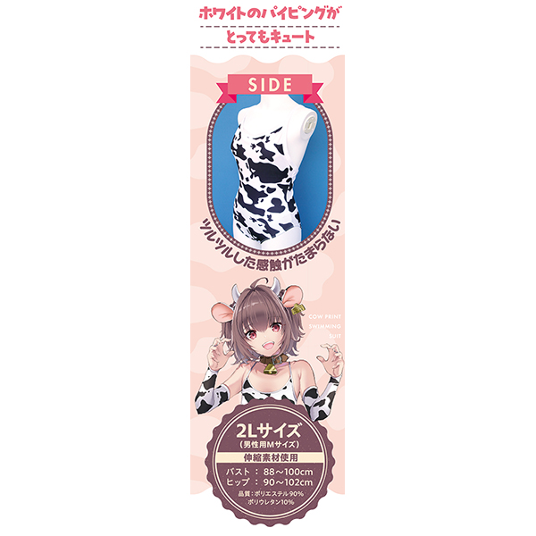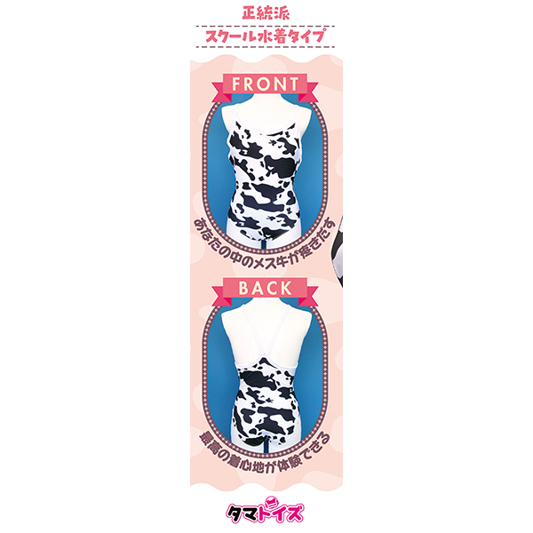 牛柄コスチュームで、野生の魅力を解き放て!あなたの中のメス牛が疼きだす、正統派スクール水着タイプ。