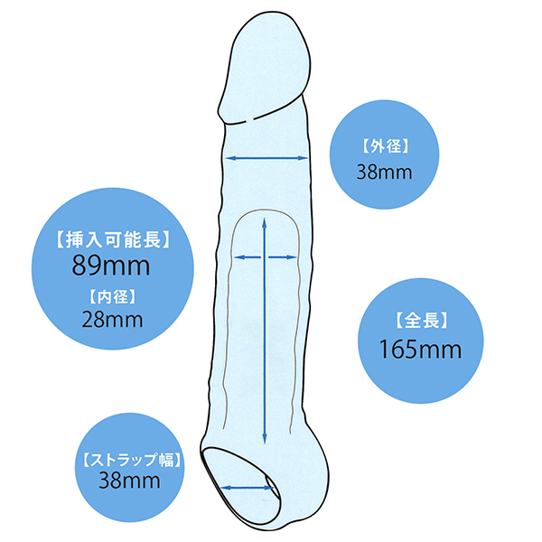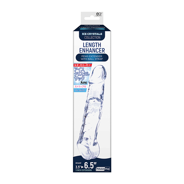 サイズアップしながら、プレイ時の状態が見えることで さらなる興奮を呼び起こすクリスタルサック! ゴムのような弾力性を持つTPE素材製なので、伸びがよく、 さらに装着時のフォローとして、ボール部ストラップが 付いているので、しっかり固定できます。