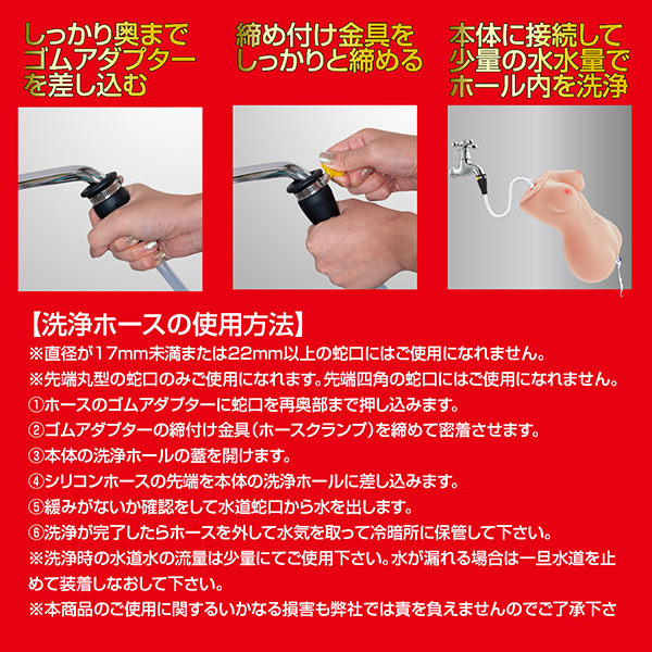 ※洗浄時の水道水の流量は少量にてご使用下さい。水が漏れる場合は一旦水道を止めて装着しなおして下さい。