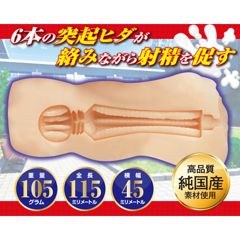 地味子との背徳感溢れる濃厚Hに酔いしれる。内部形状は6本の突起ヒダが特徴的で、サオに絡みながらズリズリシゴいて射精を促します。