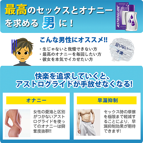 北米でベストセラーを記録している、独自の成分でシルクのように滑らかな潤滑を実現するアストログライド。少量でも驚異的な潤滑性能&コンドームと安全に併用可能な水溶性ローションです。持ち運びに便利なチューブタイプの35ml入りが登場しました。高品質のローションをカバンに携帯しておけば、いつでもどこでもヌルヌル体験出来ちゃいます。