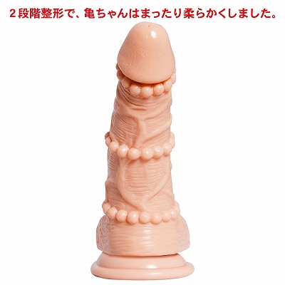 堂々たるいでたちのリアルディルドのサオ部分に、3段のイボリングが施された快感アップタイプのイボマラディルド!