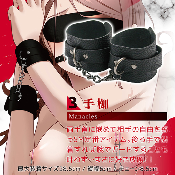 アイマスクや手枷等の基本的なアイテムに加え、完全に自由を奪う十字枷で拘束力を強化。