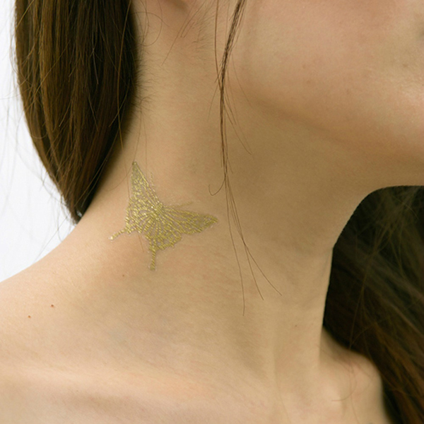 キラキラと煌くゴールドカラーの蝶々とバラ模様は、一見、肌の色と同化して見えるので、さりげないお洒落には最適です。