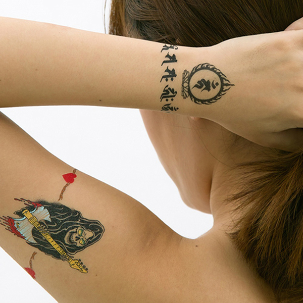 大小デザインの異なる音符やハードなデザインの悪魔など、ハードロックな気分を気軽に楽しめるボディーシールです。