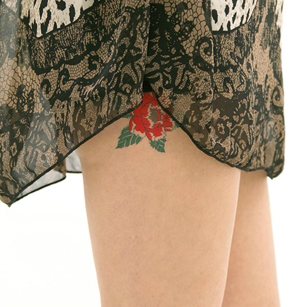 朱色のボタン模様の刺青シールは、定番模様なので、すこし華やかさを持たせたいアレンジ時にオススメです。
