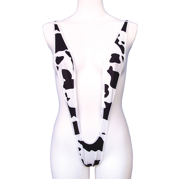 大胆でセクシーな牛柄コスチュームで、野生の魅力を解き放て! あなたの中のメス牛が疼きだす 貴方を解き放つセクシーコスチューム ボディラインを美しく魅せるV字型レオタード 着丈:61cm Fサイズ 男女兼用 ポリエステル90% ポリウレタン10% イラスト:atahuta