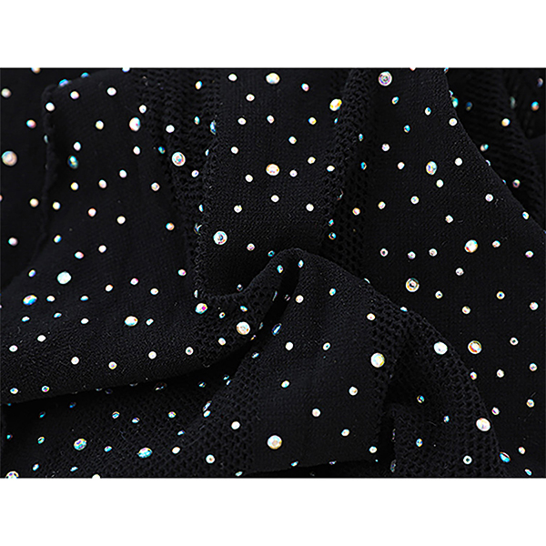 黒いメッシュの上に、満天の星空のようにきらめきます。太もものガーター部分にもラメがキラキラ。
