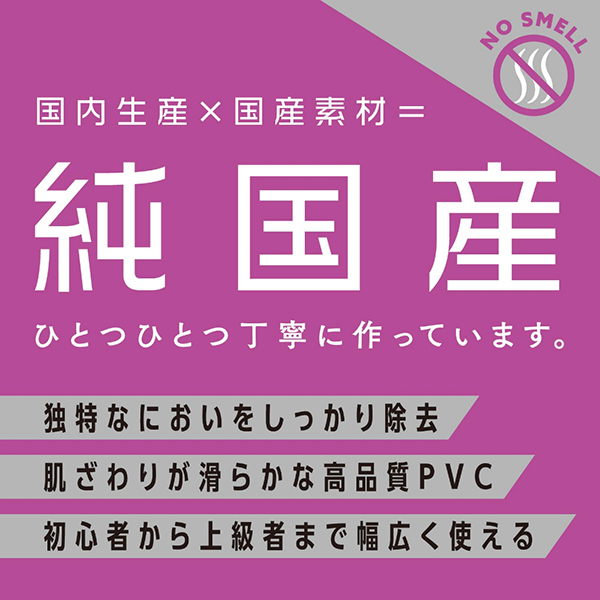 国内生産×国産素材=純国産!アナニー開発を安心して楽しめます。独特なにおいをしっかり除去し、肌ざわりが滑らかな高品質PVCを使用。